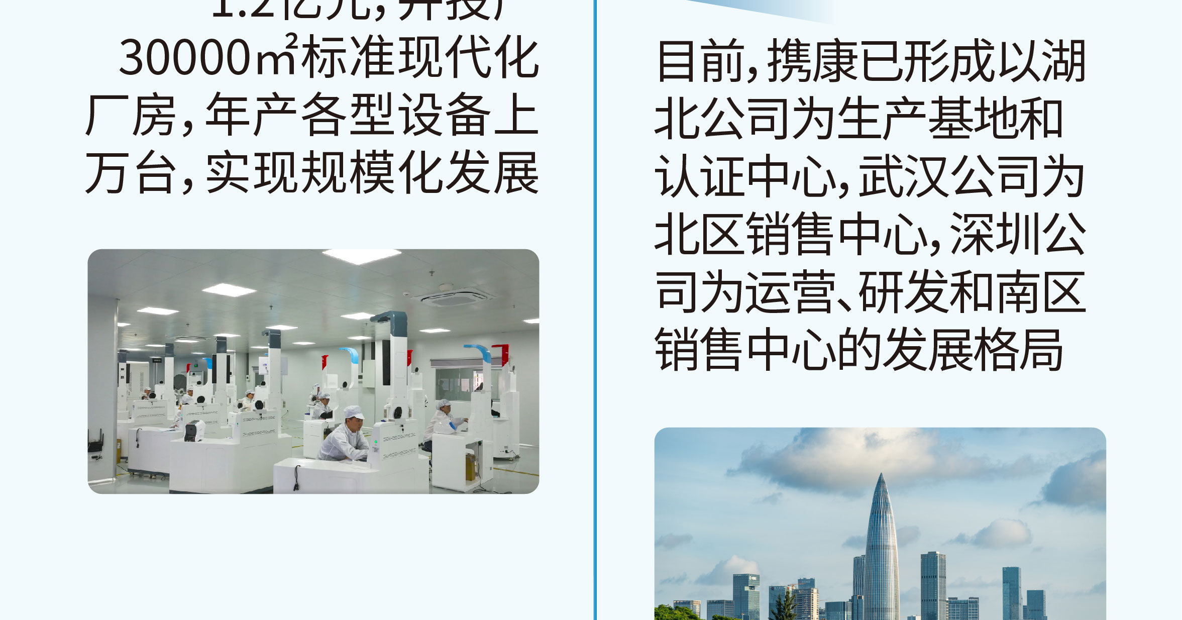 2015年,公司斥資5000萬打造智能健康設(shè)備生產(chǎn)基地,在武漢光谷成立了控股子公司——武漢攜康智能健康設(shè)備有限公司(醫(yī)療器械GMP認(rèn)證生產(chǎn)企業(yè)) , 夯實了制造基礎(chǔ), 邁出了發(fā)展中最堅實的一步。